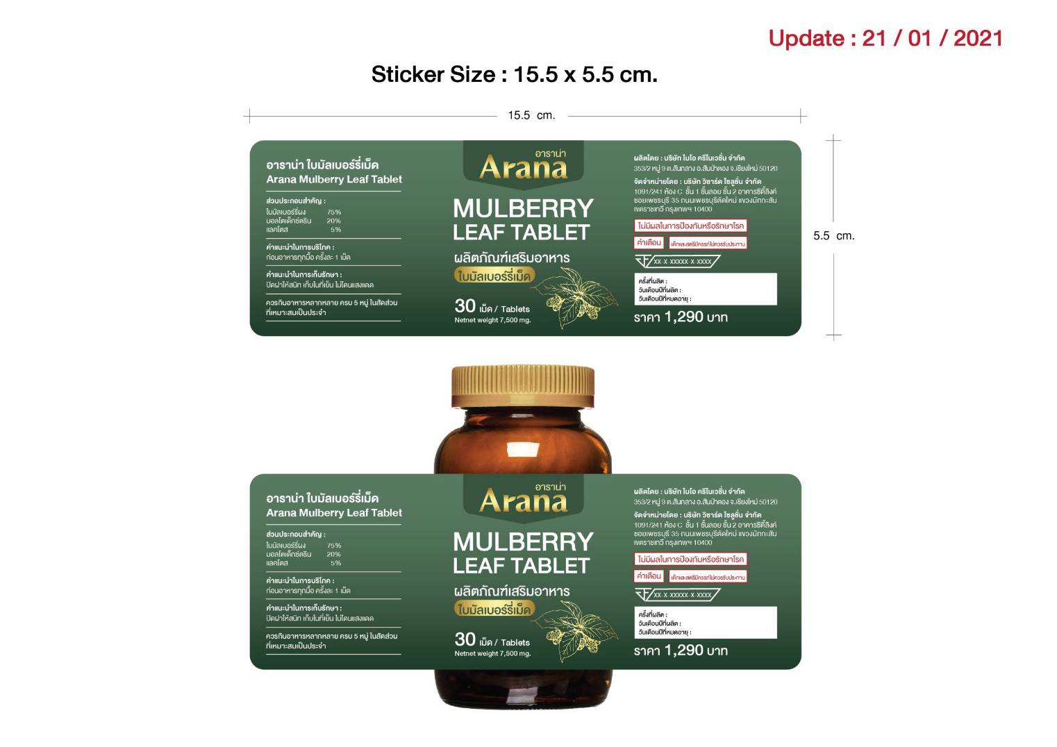 2. ผลิตภัณฑ์เสริมอาหาร ใบหม่อนเม็ด ตราอาราน่า (อย. 50-1-16264-5-0001)